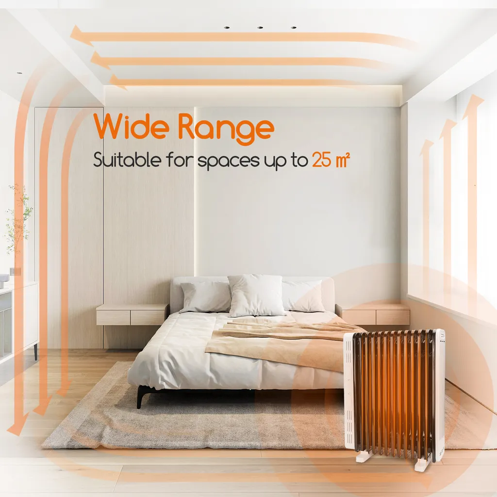 Aigostar 2500W Ölradiator Energiesparender, Elektro Heizkörper Mit 13 Rippen, 3 Heizstufen, Elektroradiator Elektro Heizung