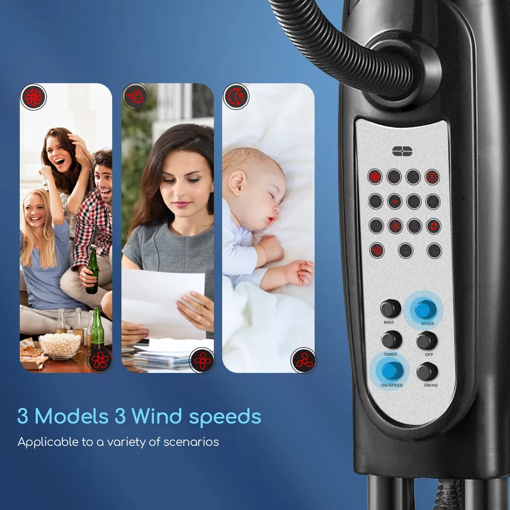 Aigostar Breeze Standventilator Mit Wasserzerstäuber, Ventilator Mit Fernbedienung, Lüfter Mit 3 Modi, Verstellbarer Neigungswinkel, Metall, Schwarz