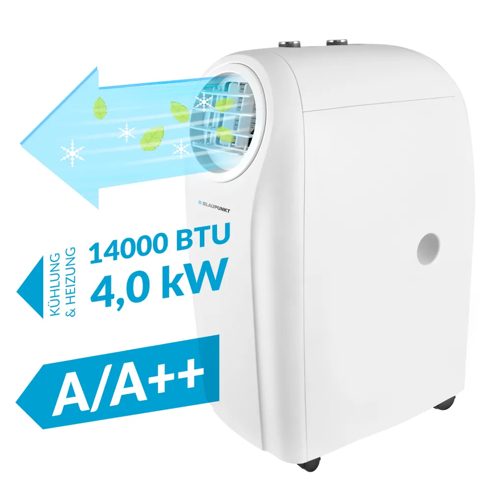 Blaupunkt Klimagerät ARRIFANA 1414L, Mobile Klimaanlage Für Zuhause, Büro Oder Wohnwagen, Wohnmobil [Energieklasse A/A+]. 14000 BTU (4 KW)