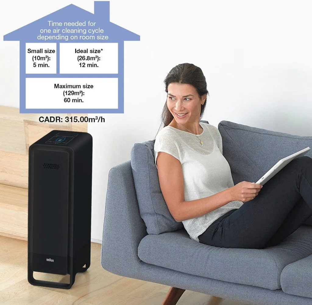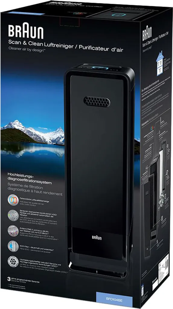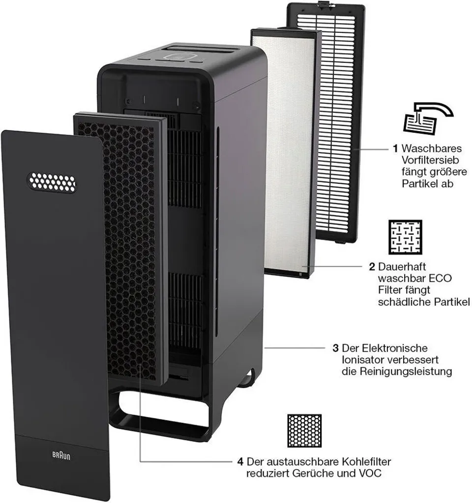 BRAUN Luftreiniger BFD104BE2 SCAN & CLEAN Raumgröße: 129 M² Dreifachfiltrierungssystem Schwarz