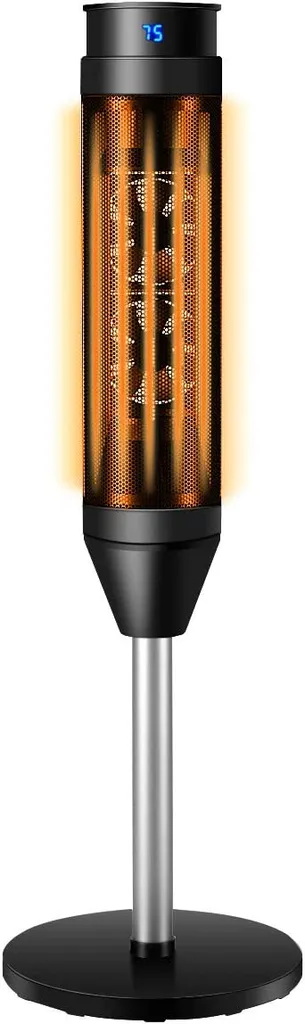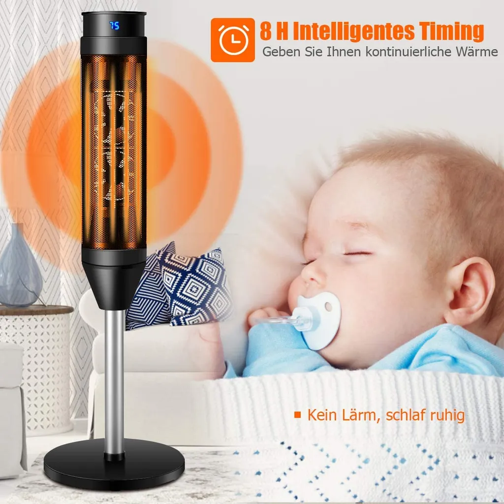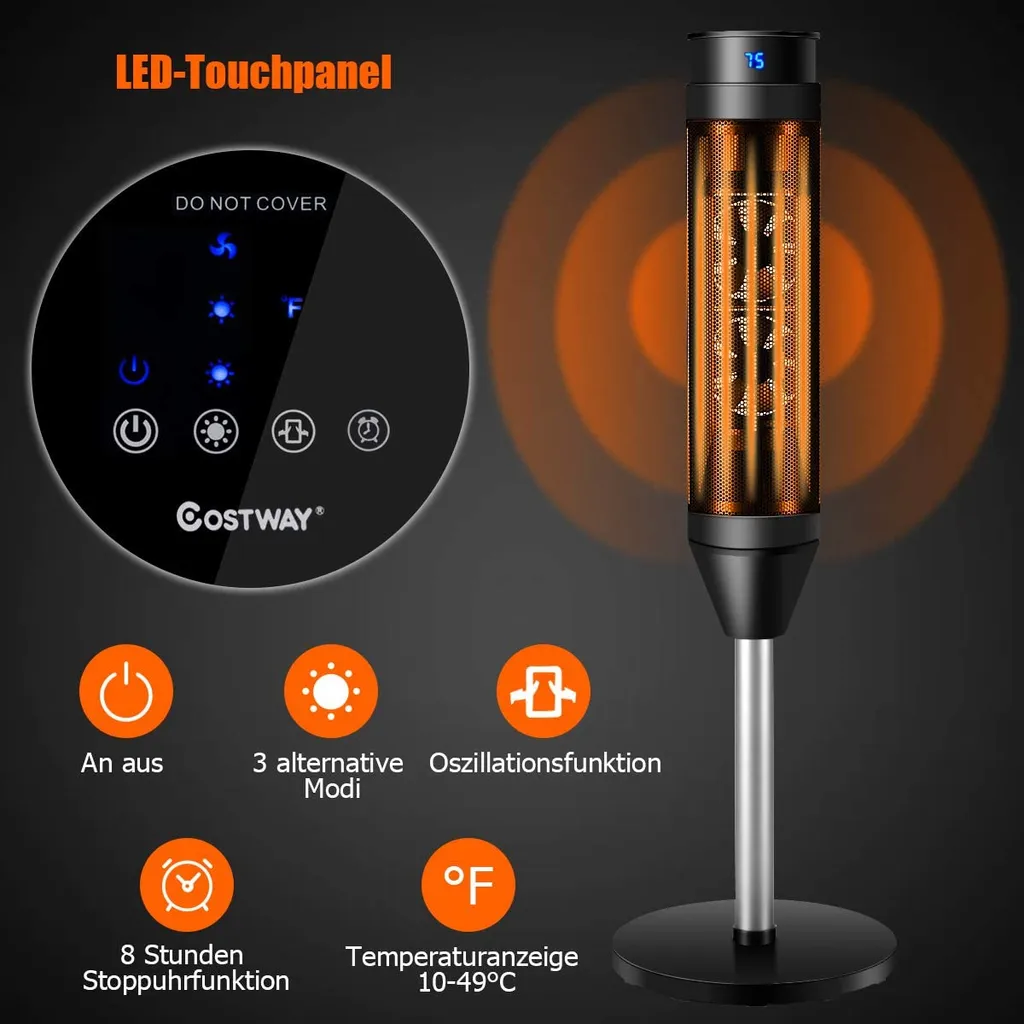 COSTWAY Heizlüfter, 1,2KW/2KW, Elektroheizung, Heizgerät Mit Thermostat & 3 Modi, 40° Oszillation, 10 – 49℃, Schnellerhitzung, Inkl. 8H Timer, LED, 28x28x85cm, Schwarz