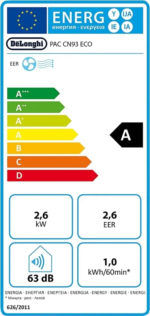De’Longhi PAC CN93 Klimagerät, Max. Raumgröße: 90 M³, 10.500 BTU/h