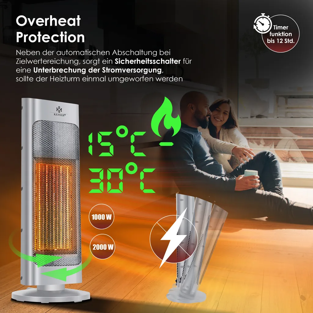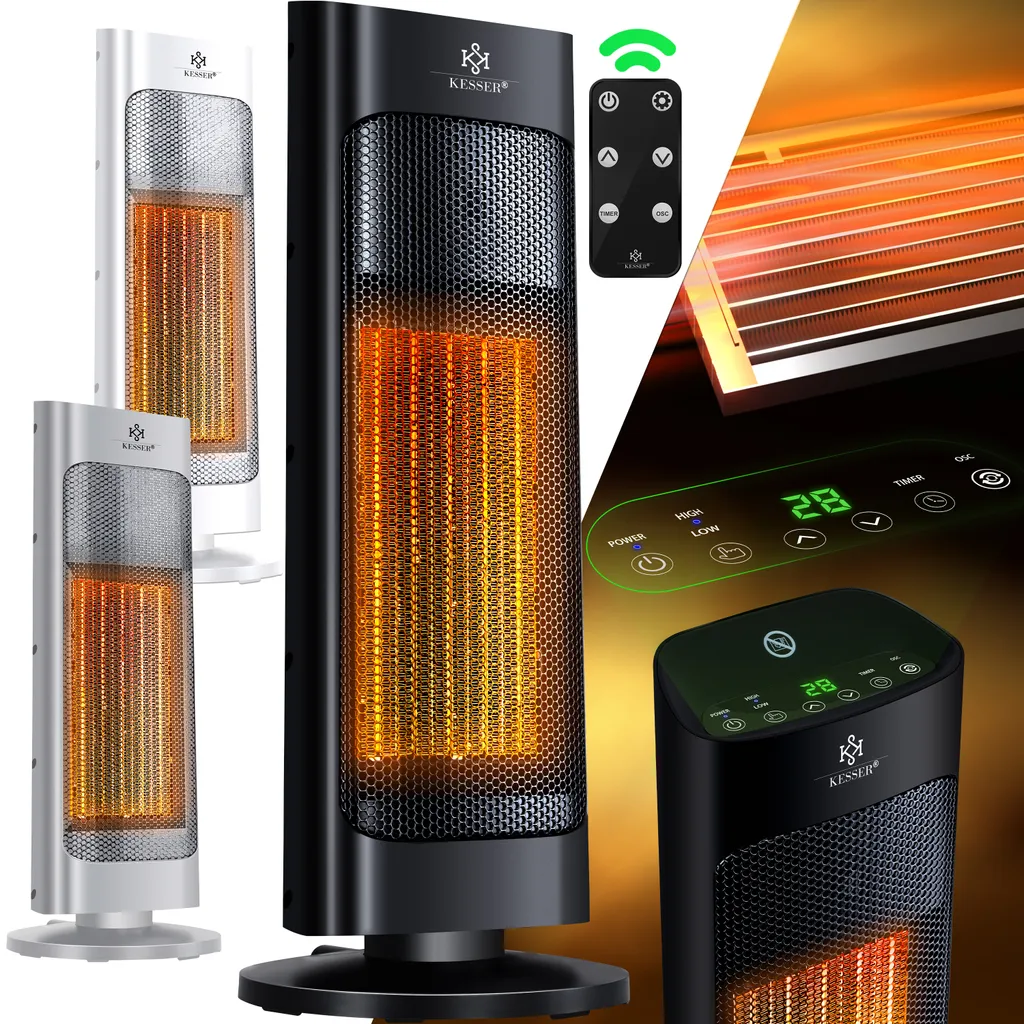KESSER® Heizlüfter Mit Fernbedienung Energiesparend Leise 2000W Keramik Heizstrahler Standheizstrahler 15-30°C – Schnellheizer Mit 80° Oszillationsfunktion 24h Timer Heizung Turmheizstrahler, Farbe:Grau