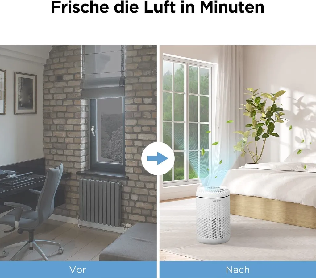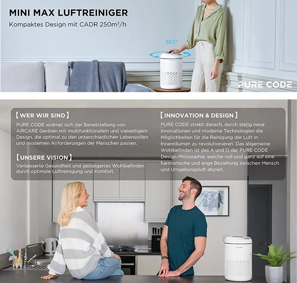 MINI MAX Luftreiniger, 35m² In Nur 10 Minuten Air Purifier H13 HEPA Filter Mit 3 Lüfterstufen Gegen 99,97% Bakterien Staub Pollen Rauch Partikel, Aktivkohlefilter 22dB Leiser Schlafmodus