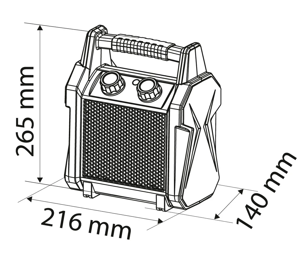 NEO TOOLS Keramischer PTC-Elektroheizstrahler, 2kW, Mit Thermostat Und Schalter, Mit Gebläse, Schaltet Sich Beim Umkippen Automatisch Ab, Geräuscharm, Geringer Energieverbrauch, Luftstrom 139 M3/h