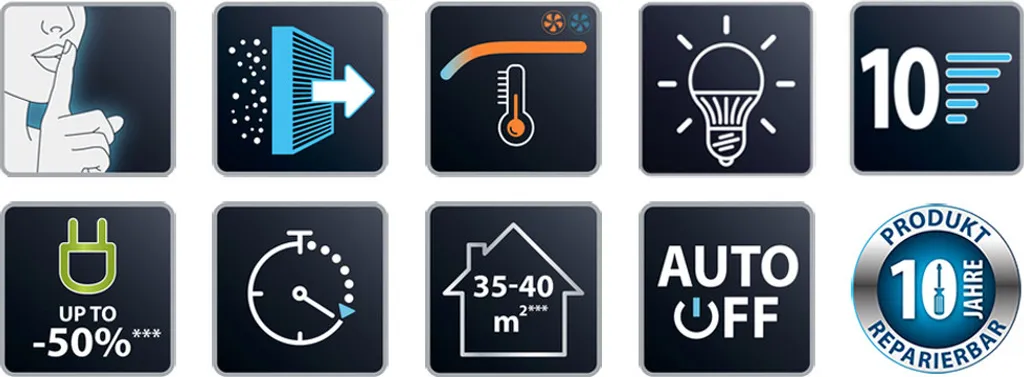 Rowenta HQ8120F0 Silent Comfort 3in1 Turmventilator Mit Smart-Technologie, Staubfilter, Ventilator & Heizung, 24h Startverzögerung, 10 Geschwindigkeitsstufen